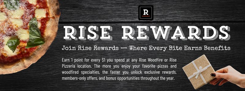 ✔️Earn 1 point for every $1 you spend at any Rise Woodfire or Rise Pizzeria location.